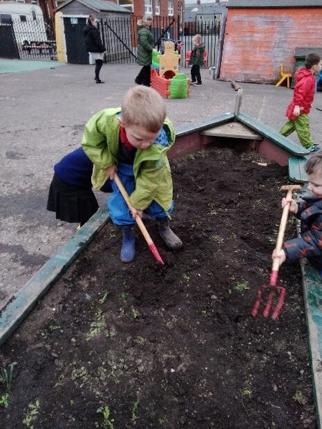 At School/Nursery, children have continued their learning through stimulating their senses and exploring the natural environment – digging, planting, searching and discovering.