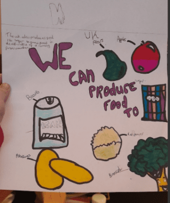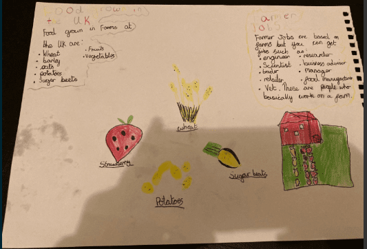 Lewis – “Food can come from this country but it’s very rare – our weather is bad here so it comes from hot countries like Greece, like raisins – they get dried out. The farmers need seeds and rakes and shovels but they need to be big for the ones that grow underground, like carrots”.