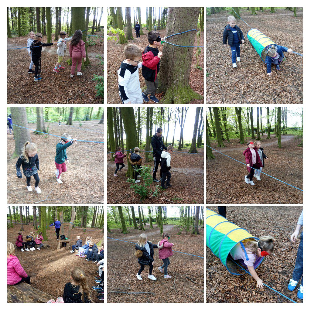 They did a carousel of four activities: orienteering, fire lighting, team building communication challenges and a blind trail.