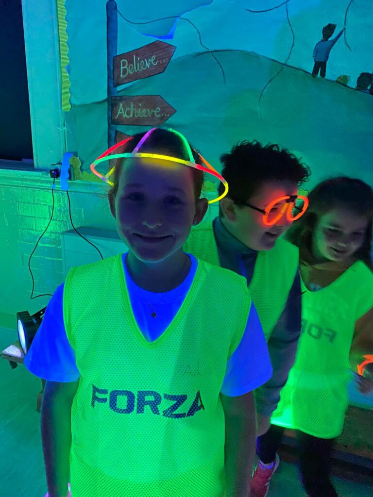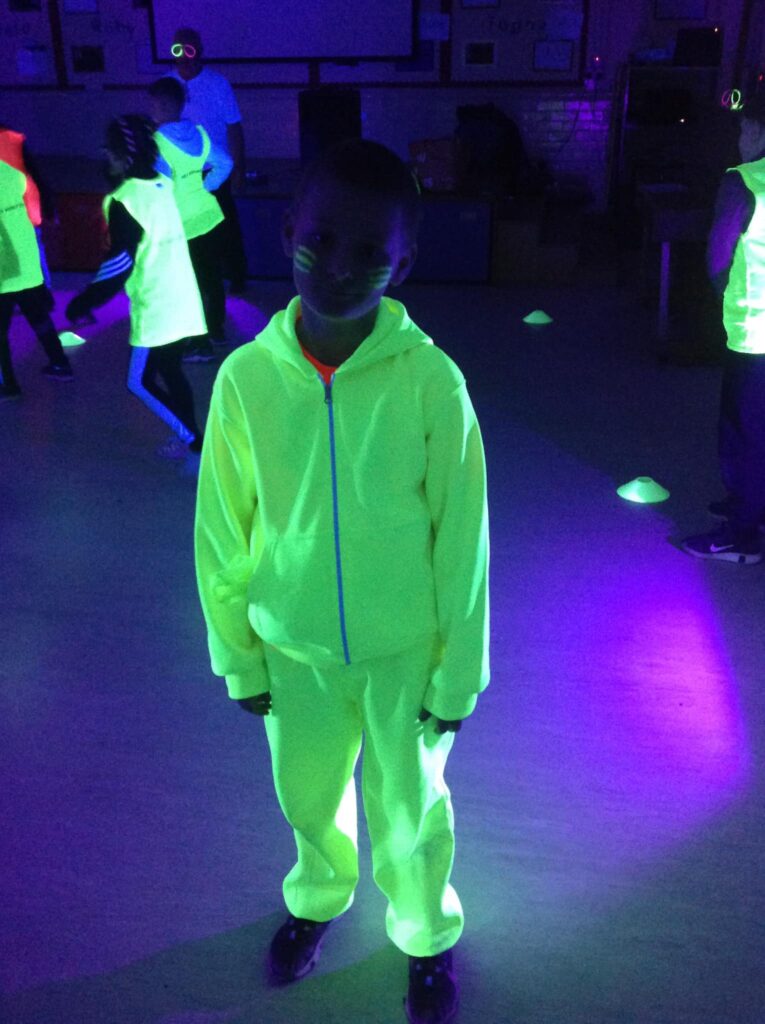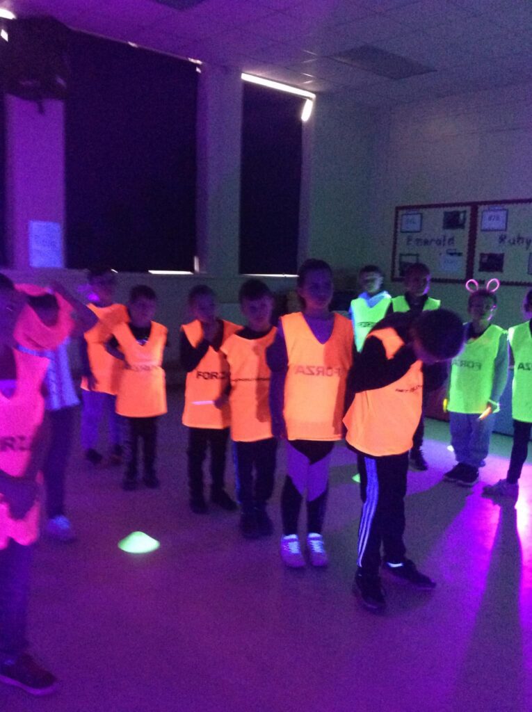 The whole school took part in a fantastic Ready, Steady, Glow day with Go Well. We loved the glow in the dark equipment and enjoyed playing different activities and taking part in dancing.